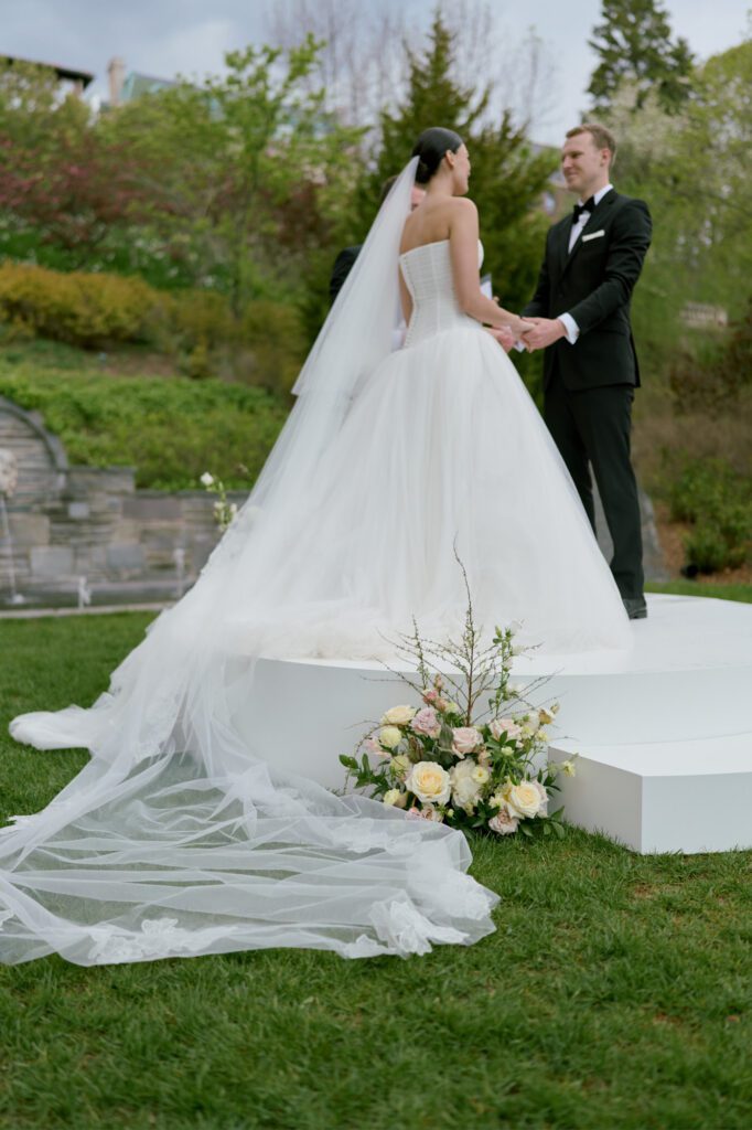 As Bailey walked down the aisle, the atmosphere felt calm and romantic. The lake and Villa Terrace architecture surrounded them beautifully. Midway through the ceremony, dark rain clouds rolled in, adding an unexpected and dramatic layer to the moment. As the rain moved in, it deepened the intimacy and emotion, making the ceremony even more memorable. The celebration continued without hesitation, reflecting Bailey and Conner’s joyful and grounded presence throughout the day.