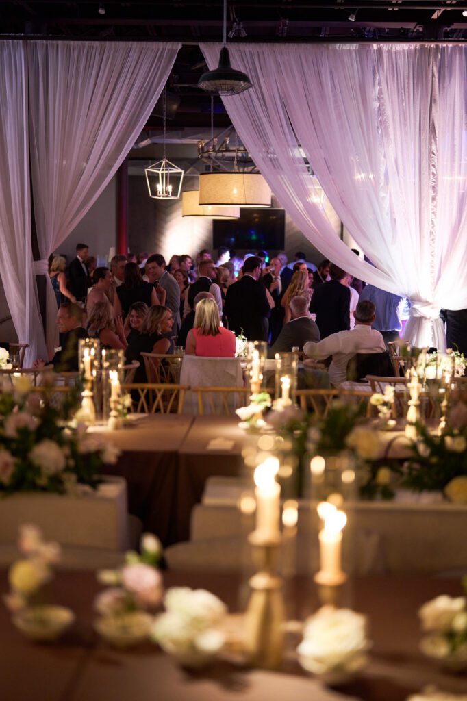 Following the ceremony, the celebration transitioned to The Atrium wedding venue for cocktail hour and the reception. The change in setting created a beautiful contrast while still maintaining the elevated and stylish feel of the day. As the evening unfolded, the energy continued to build, leading into a reception that felt vibrant, celebratory, and full of life.